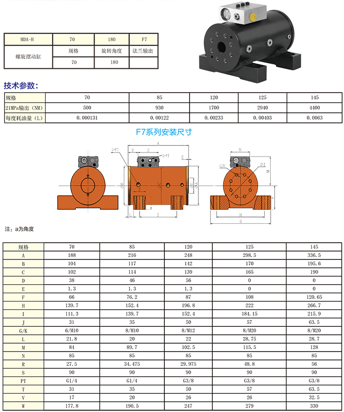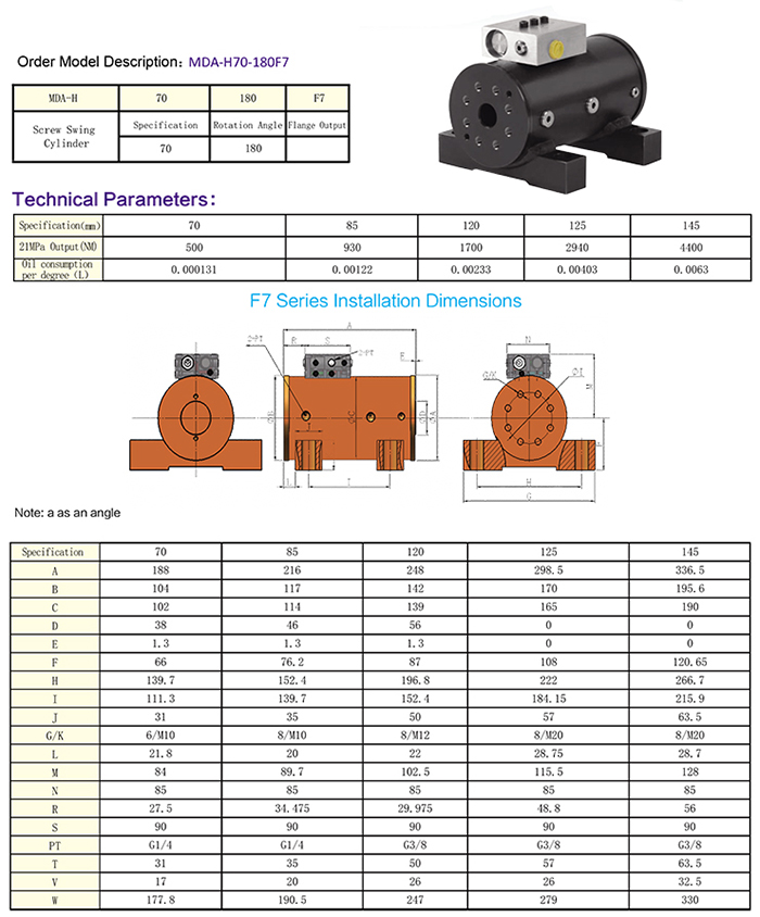 F7系列螺旋擺動油缸為底腳式安裝,帶防暴管平衡閥,結(jié)構(gòu)緊湊,外觀合適。安裝方便,普遍應(yīng)用于各種工程機械及翻轉(zhuǎn)機構(gòu),與進品F7系列1:1互換使用。